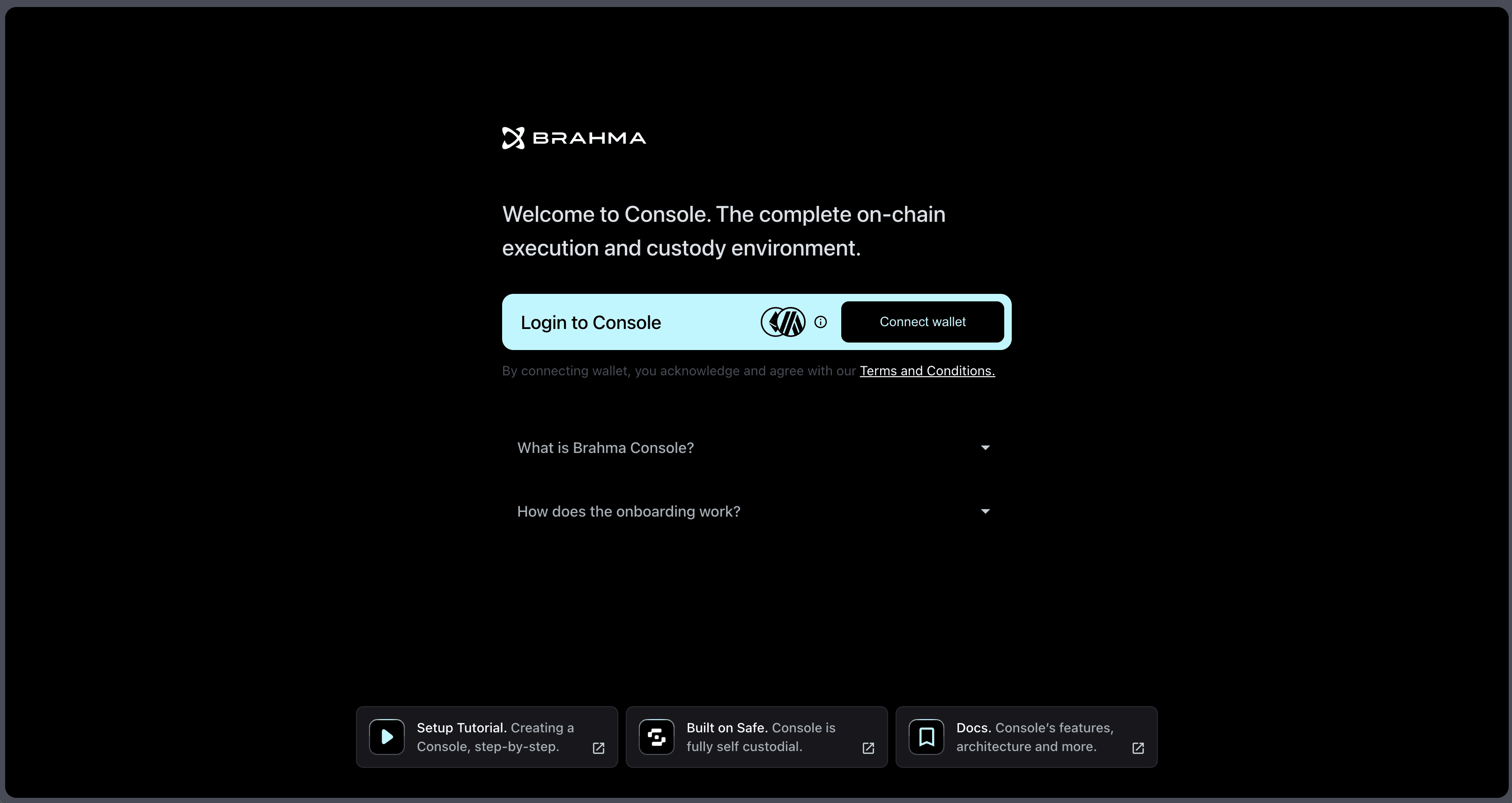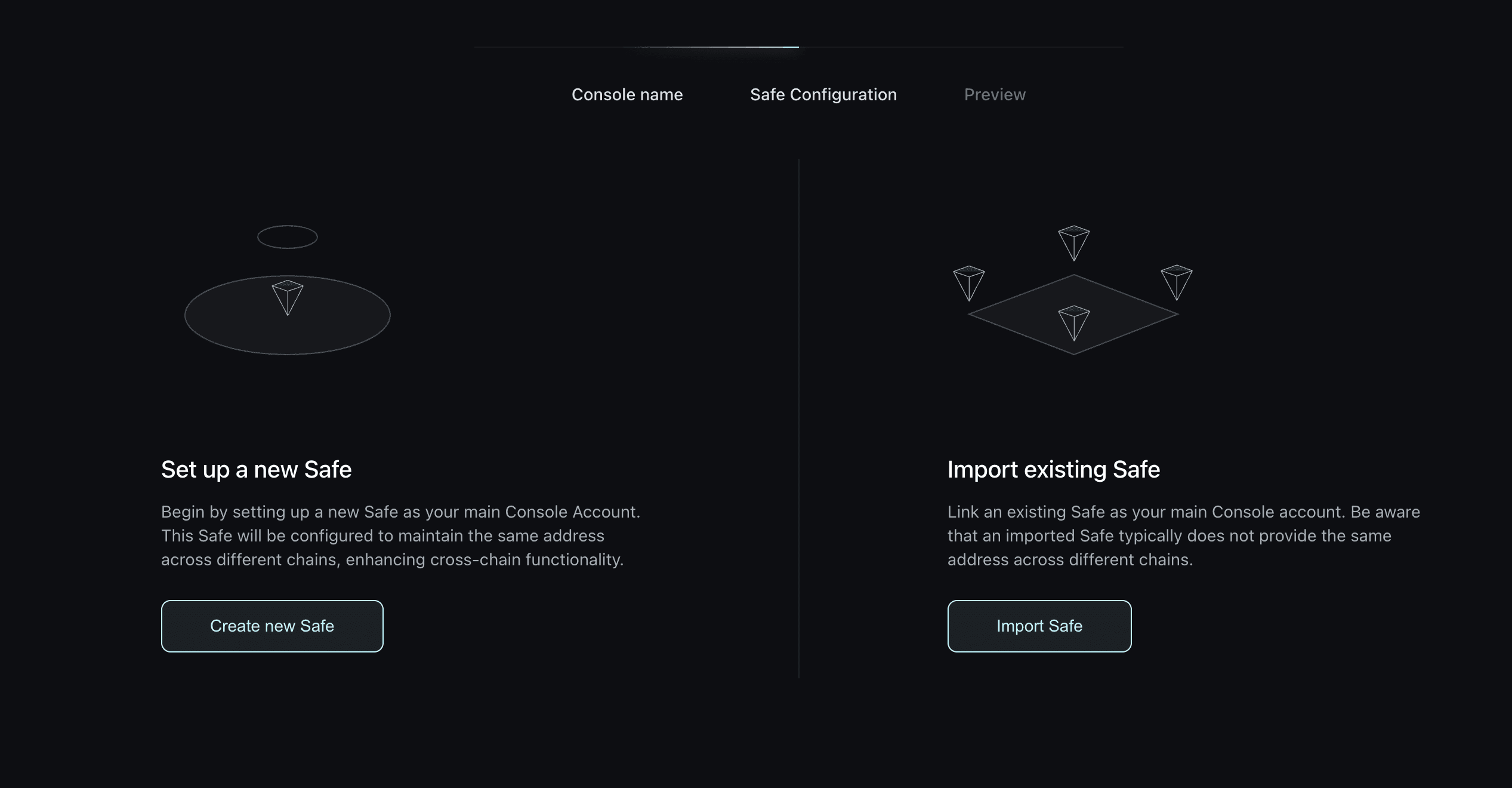 Once signed – you’ll be directed to a short explanation page, and then you’ll be able to either Create a new Console or Import existing Safe.